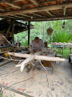 He currently participates in art shows and continues with projects, installations and runs carving courses and workshops in Jarinu, in his bioconstruction studio, for beginners and artists who want to improve.